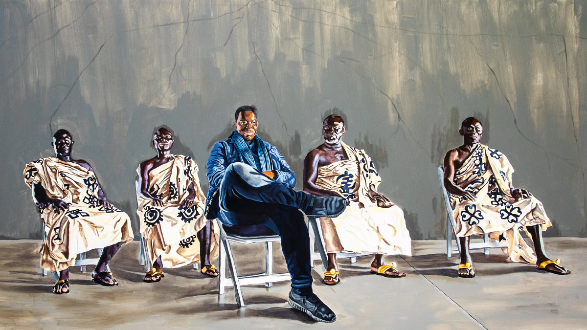 The combination of painting friends forming a close-knit community is an adumbration and any apparent stability is immediately undermined by its fragile installation; a feeling of uncertainty and constant emotional change within one's inner world.